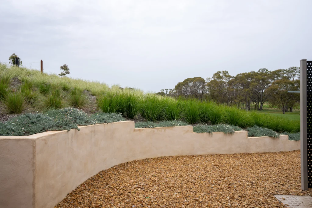 This ongoing project has progressed through several stages, including garden design, installation, and maintenance. Works included earthworks, edging, gardens, irrigation, paving, gravel, a rendered wall, steps, and outdoor lighting.