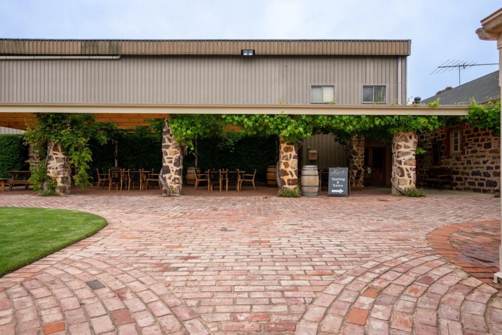 This project focused on intricate paving using old red brick, carefully laid in unique patterns to complement the winery’s rustic, historic feel.